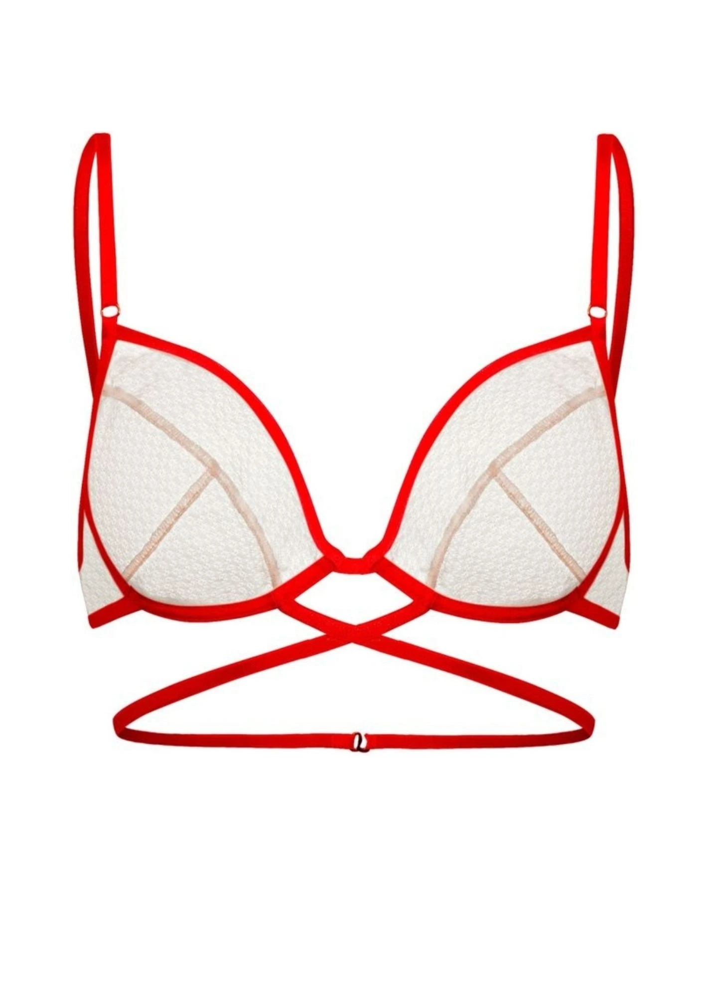 Striking red lines frame your breasts perfectly, coupled with the ‘barely there’ tulle mesh to leave little room for the imagination.